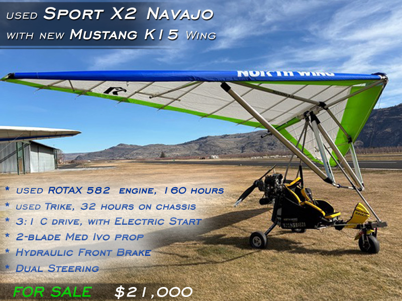 Sport X2 Navajo trike with Mustang K15 Wing$21,000 Ready for immediate delivery to you!Used
